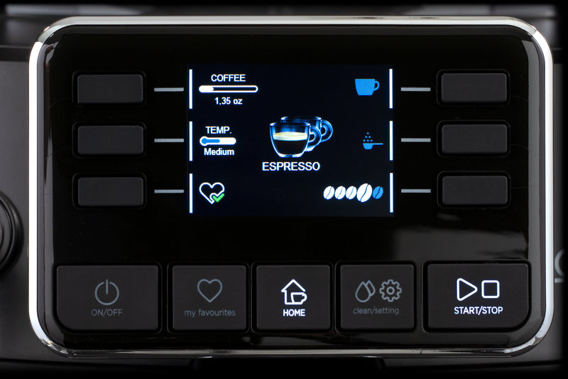 The Cadorna can produce 6 personalized beverages including ristretto, espresso, espresso lungo, coffee, Americano, and hot water.